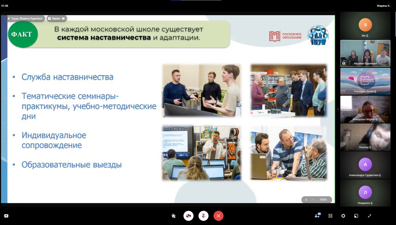 26.03.25 г. состоялась встреча в онлайн формате студентов ФГБОУ ИВО «РГУ СоцТех» с руководителем команды подбора учителей Центра занятости населения Москвы. На встрече обсуждались важные аспекты работы в школе, включая перспективы развития молодого педагога и актуальные тренды в профессии школьного учителя. 📚